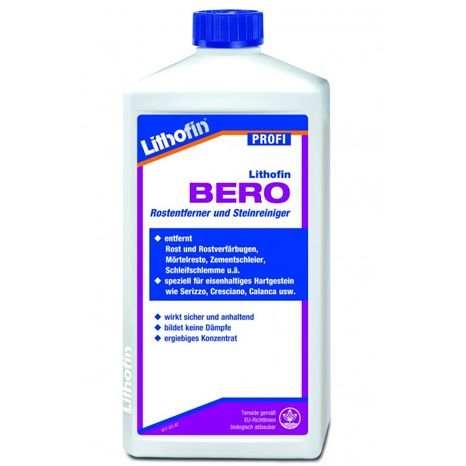 Kod prirodnog kamena koji sadrži željezne tragove koji vremenom oksidiraju, dolazi do rđavih mrlja koje se odstranjuju sa sredstvom za odstranjivanje rđe. Sredstvo također odstranjuje i ostatke morta, cementa i sl. Primjenjuje se na kristalasti škriljevac (Serizzo, Cresciano, Calanca) i granite (npr. Sardo bjeli).
